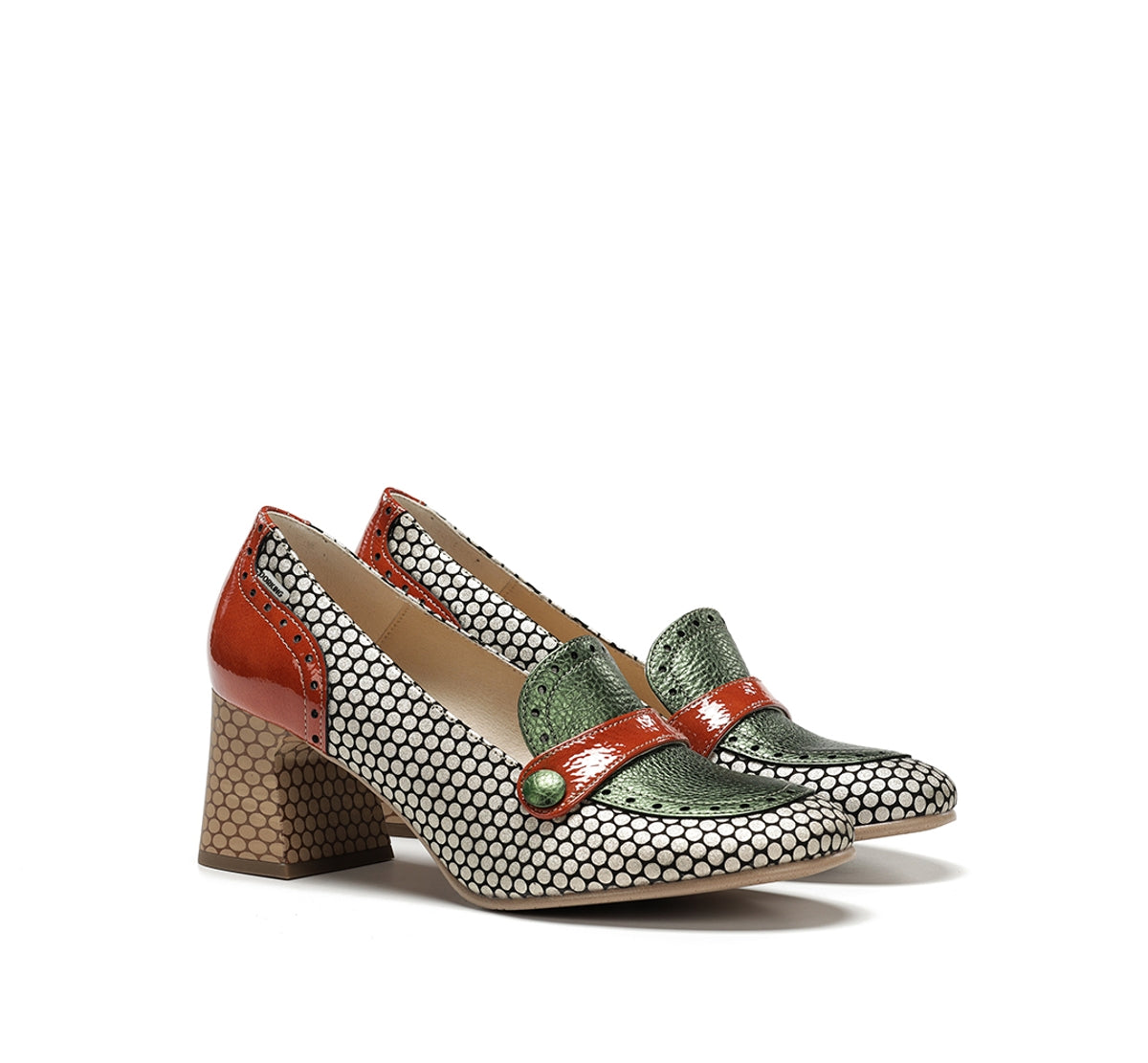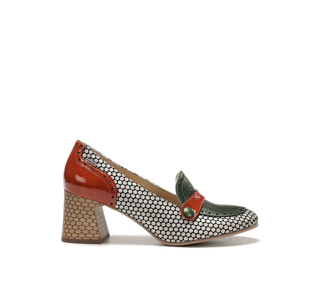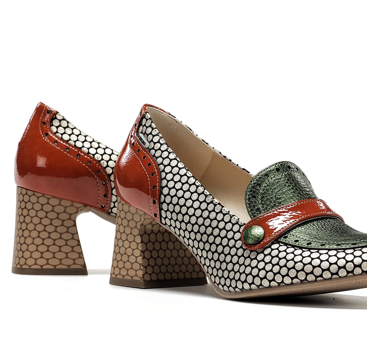 Daci destaca-se pelo seu caráter ousado e design cheio de personalidade. Disponível em versões com atacadores, fivela ou de calce fácil, adapta-se a qualquer estilo e ocasião. O salto geométrico oferece estabilidade e um toque distinto, enquanto a combinação de cores e texturas reflete uma elegância criativa. Um modelo pensado para mulheres que gostam de se destacar com estilo próprio.