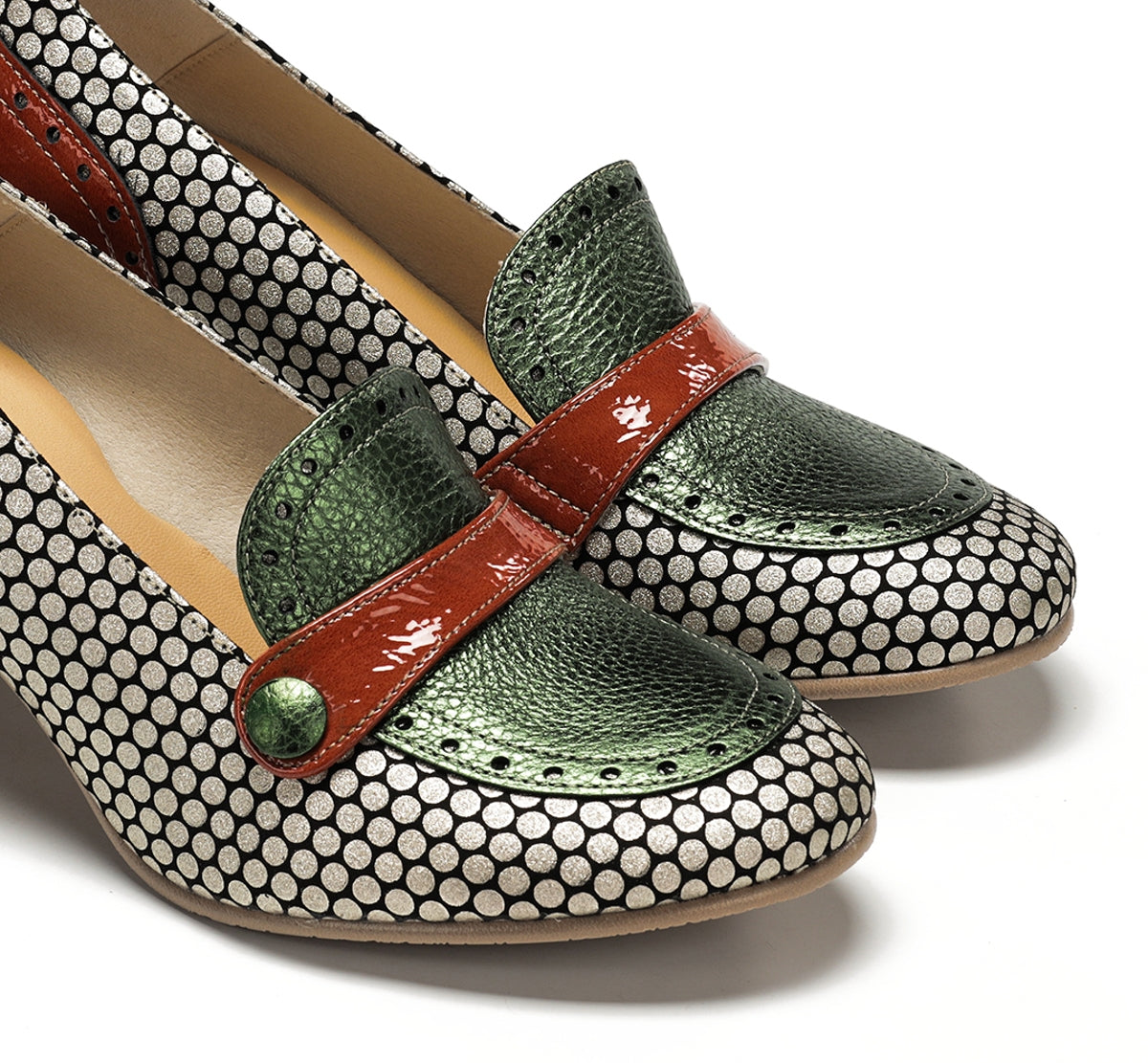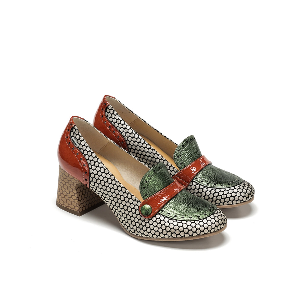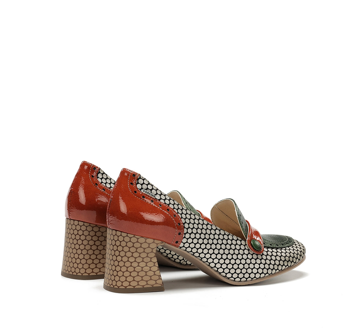 Daci destaca-se pelo seu caráter ousado e design cheio de personalidade. Disponível em versões com atacadores, fivela ou de calce fácil, adapta-se a qualquer estilo e ocasião. O salto geométrico oferece estabilidade e um toque distinto, enquanto a combinação de cores e texturas reflete uma elegância criativa. Um modelo pensado para mulheres que gostam de se destacar com estilo próprio.
